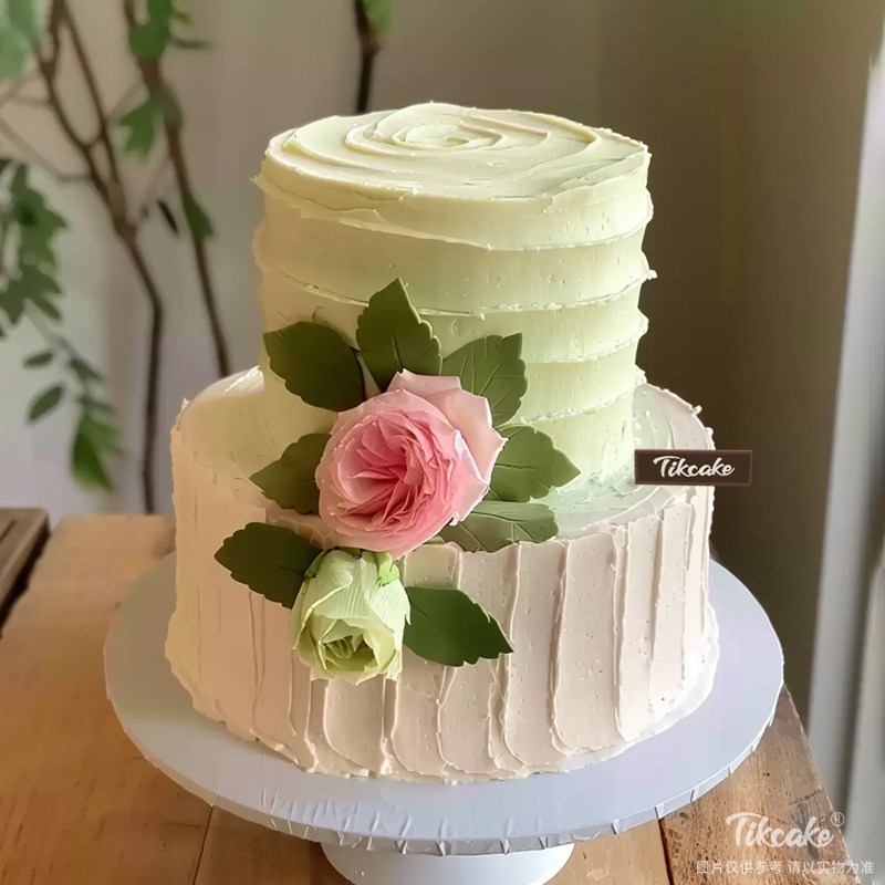 原创鲜花主题双层鲜奶蛋糕